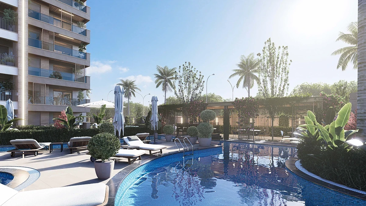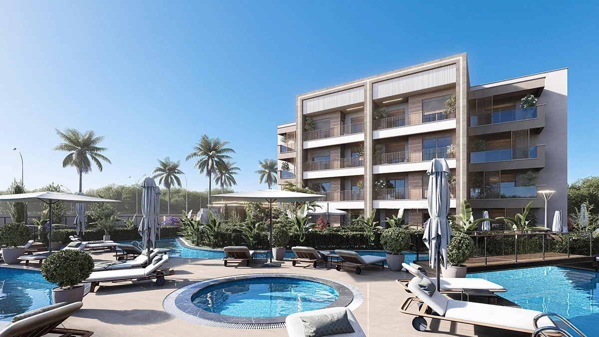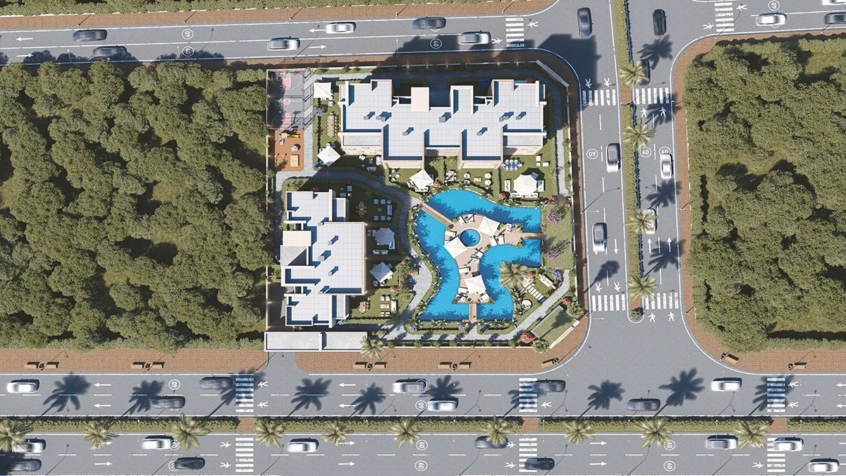 Die Fläche des Komplexes beträgt 8600 m2. 3 Blöcke. 80 Wohnungen 1+1, 2+1 Grundrisse. Überdachter Parkplatz, Außenparkplatz, Poolbar, Schwimmbad für...