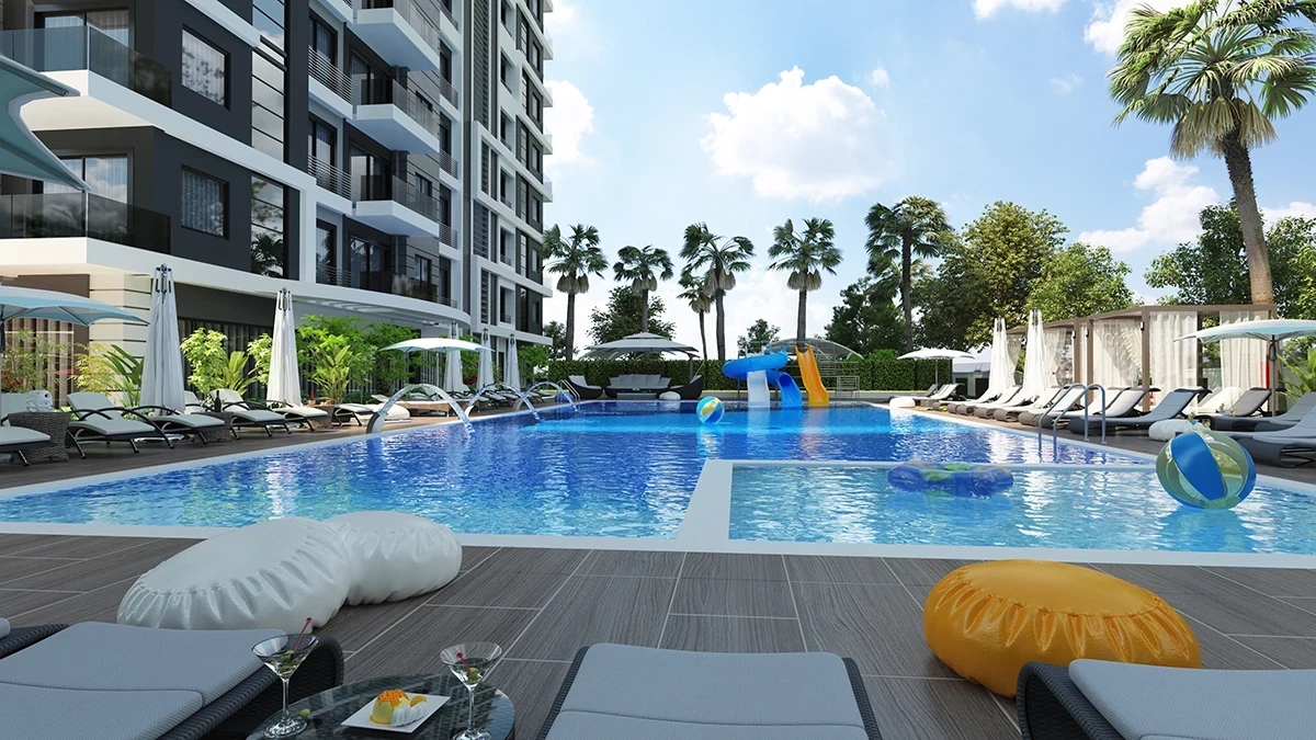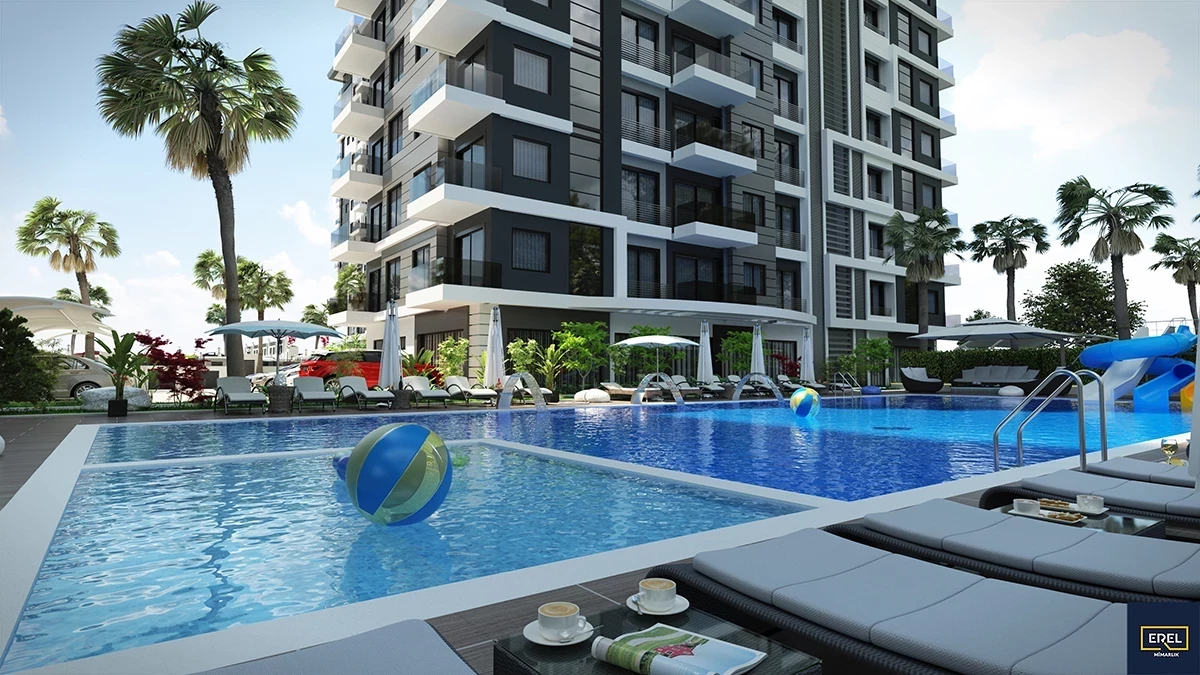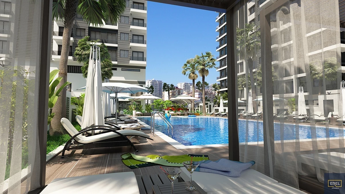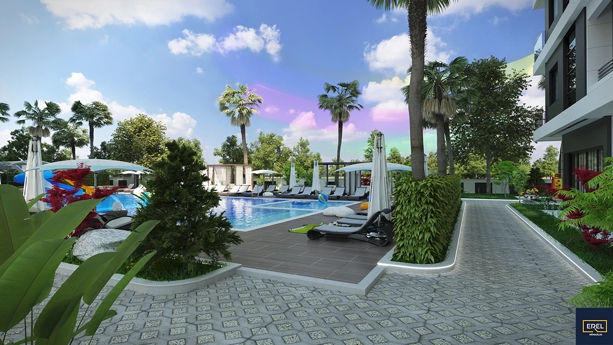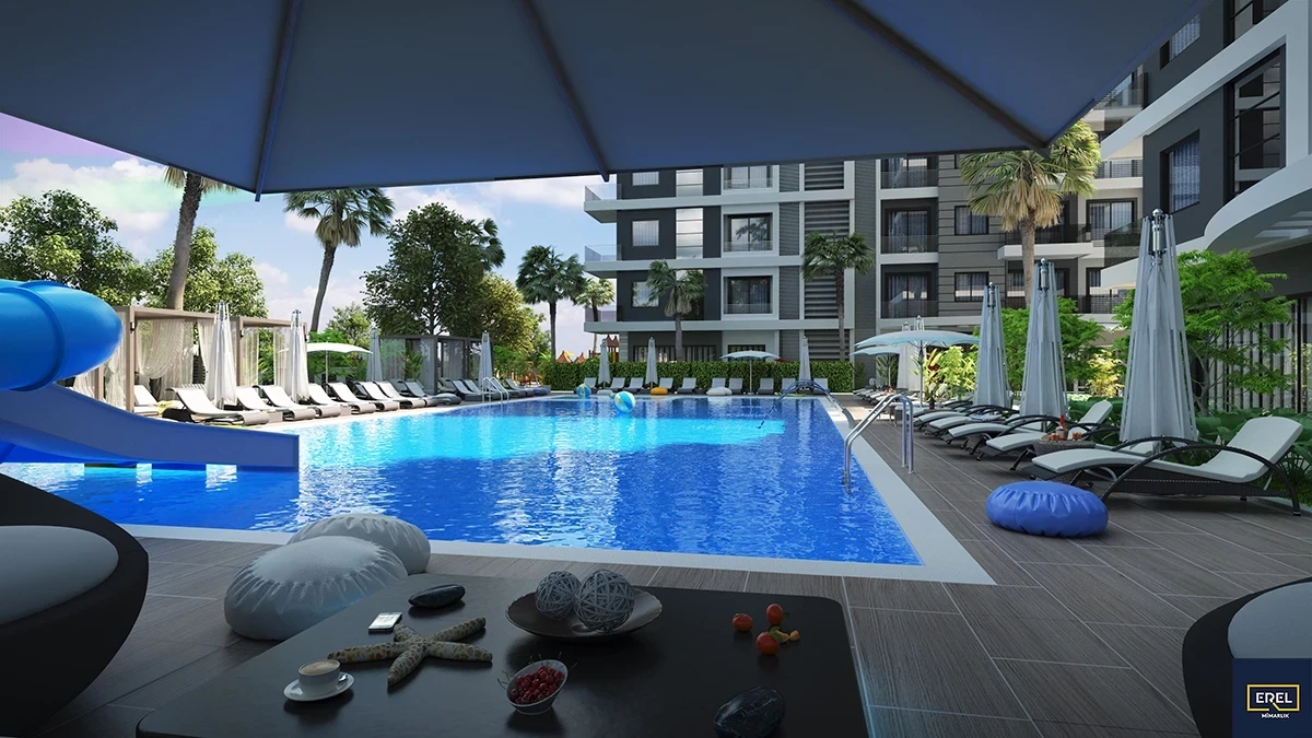 Die Fläche des Komplexes beträgt 6675 m2. 3 Blöcke mit 247 Wohnungen 2+1, 4+1 Maisonette-Grundrisse. Außenpool, Kinderrutschen, Loungebereich, Außenparkplatz, Kinderspielplatz, Gärten und Grünflächen, Innenpool, Hammam, Fitnessraum, Whirlpool, Massageraum, Sauna, Stahleingangstür, Wohnungen werden komplett fertiggestellt vermietet. Fälligkeitsdatum: 07.2024