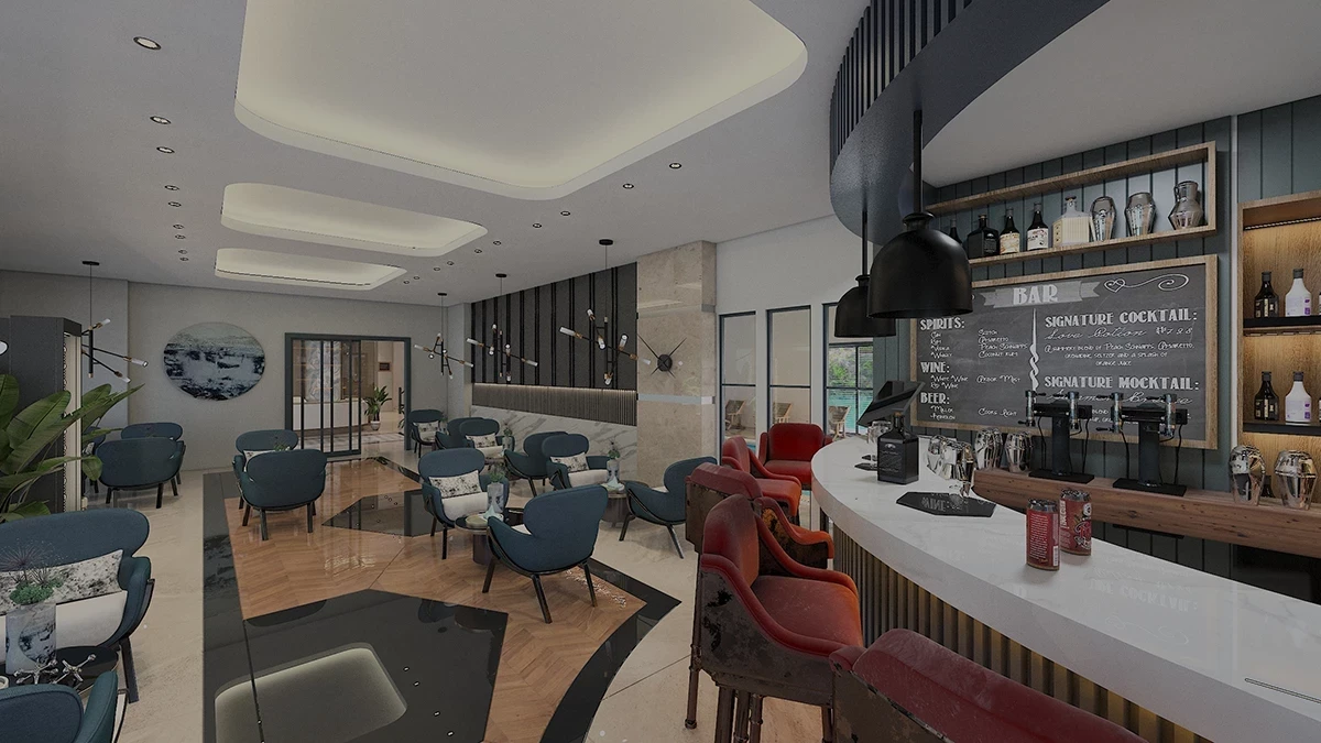 Die Fläche des Komplexes beträgt 2883 m2. Insgesamt 55 Wohnungen mit 1+1-, 1+1-Duplex-Grundrissen. Außenpool, Fitness, Sauna, Kinderspielplatz, Parkpl...